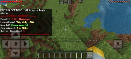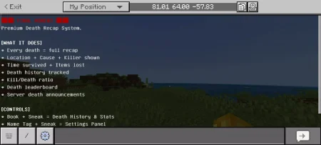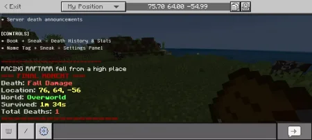 Final Moment - Death Recap Minecraft addon will display all final statistics about the game at the final moment after death.