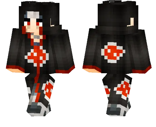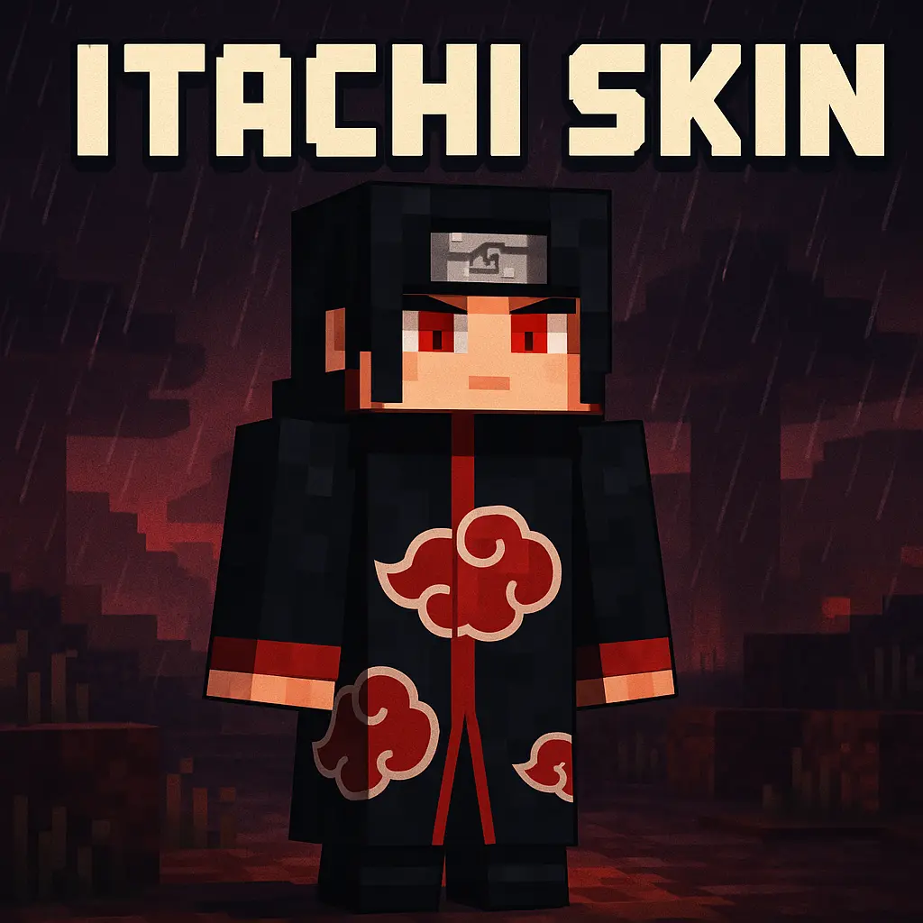 In survival, this skin feels right if you’re the one doing the “dirty work” for the squad—clearing caves, handling bosses, scouting dangerous areas, and slipping back home with full chests while everyone else is still gearing up. Standing on top of a build in the rain, guarding your friends from mobs, or walking alone through dark forests fits this look almost too well. On PvP servers, the cloak and silhouette make you instantly recognizable in duels and arenas, so when people see you in that Akatsuki coat, they already know you’re not in the mood to play nice. Whether you’re defending a base, hunting in the shadows, or just chilling on a rooftop watching the world burn, the Itachi Skin gives your character that calm, untouchable aura every time you log in.