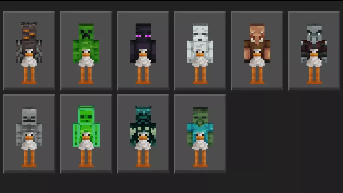 Chicken Jockey - Skin Pack is built around one dumb, perfect joke: “what if every mob got the chicken jockey treatment?” You get 10 different skins, and the whole vibe is chaos-friendly, like something you’d wear on a server when you want everyone laughing before the first creeper even shows up. It’s especially good for Minecraft Bedrock / MCPE multiplayer because the moment someone spots you across a village or a PvP arena, they instantly get what you’re going for. It’s not a subtle pack, and that’s the point.