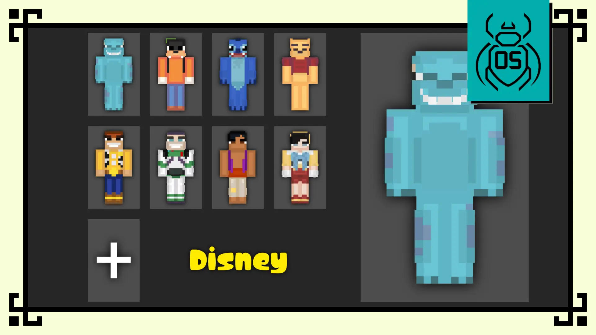 Disney Skin Pack gives you a clean set of 8 skins that actually feel different from each other, which is huge for multiplayer. Sullivan (Sulley) is the big, friendly tank vibe — perfect for the player who’s always taking point in caves or walking around in full armor like a bodyguard. Goofy is pure chaos energy in the best way; throw him on when you’re doing parkour, trolling your friends, or just being the one who accidentally starts a raid because you poked something you shouldn’t. Stitch is built for the “tiny gremlin” role — the dude who sneaks into people’s bases, runs off with random loot, then shows up later acting innocent. Winnie the Pooh is the cozy pick for builders and farmers, especially if you’re living that chill survival life with bees, crops, and a warm little house that smells like bread and campfires.