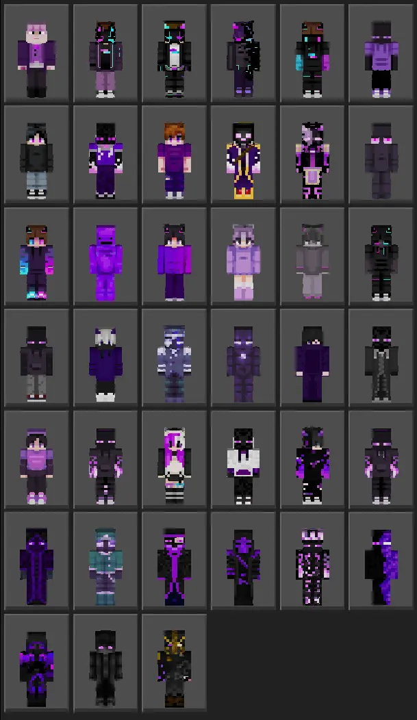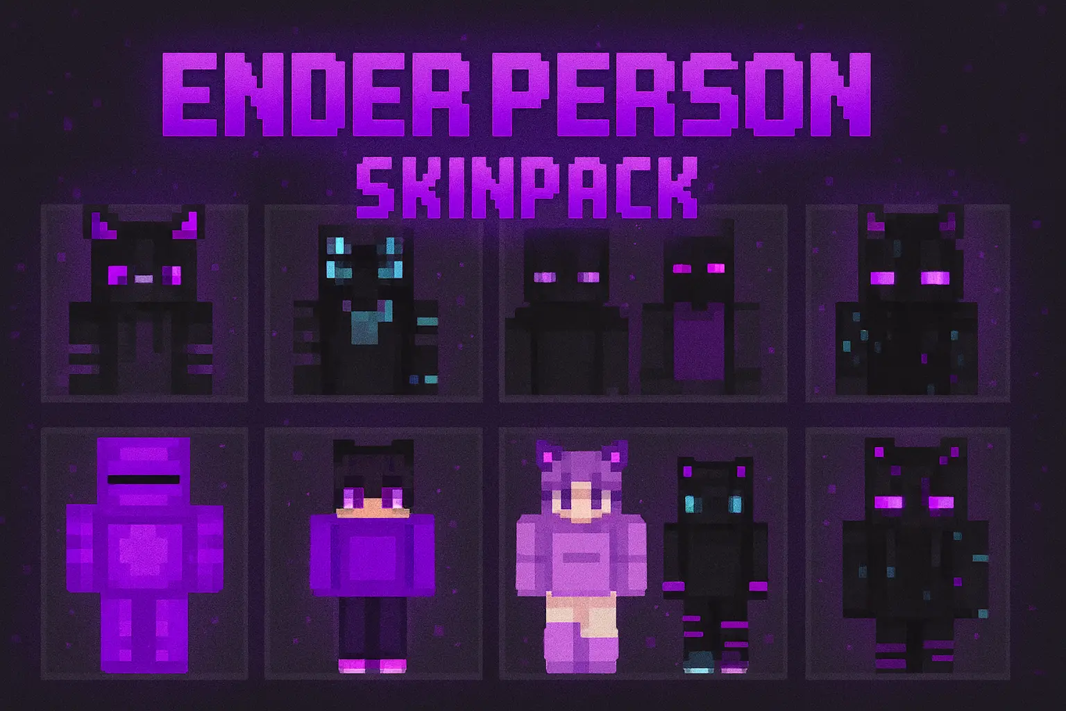 On realms and servers the collection becomes a full squad theme. One friend locks in the Ender Knight as the frontline PvP player, another uses the Ender Mage for support roles and redstone builds, someone else picks a more minimal Traveler or Scout design for exploring, hunting portals and grabbing loot. In duels, BedWars, SkyWars and other void maps, the purple and black palettes read super clearly against bridges and islands, which looks great in clips and screenshots. Because the designs all share the same End vibe but don’t look like simple color swaps, your group can match without looking cloned. If you love the End, play a lot of sky maps or just want your character to feel like a native of the void instead of a tourist, Ender Person SKINPACK is a clean way to lock that identity in every time you join a world.