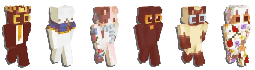 On Realms and servers, the pack really pops. Whole friend groups can lock in different cats and turn their base into a full clan: one player watching from the roof, another patrolling the paths, someone else hanging out at the farm. In minigames and hubs, it’s easy to spot your crew just by their tails and patterns cutting through the crowd. If you run themed builds—cafés, cozy villages, fantasy towns—having cat players wandering around makes everything look like a little animated series.
