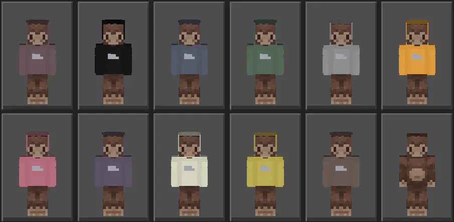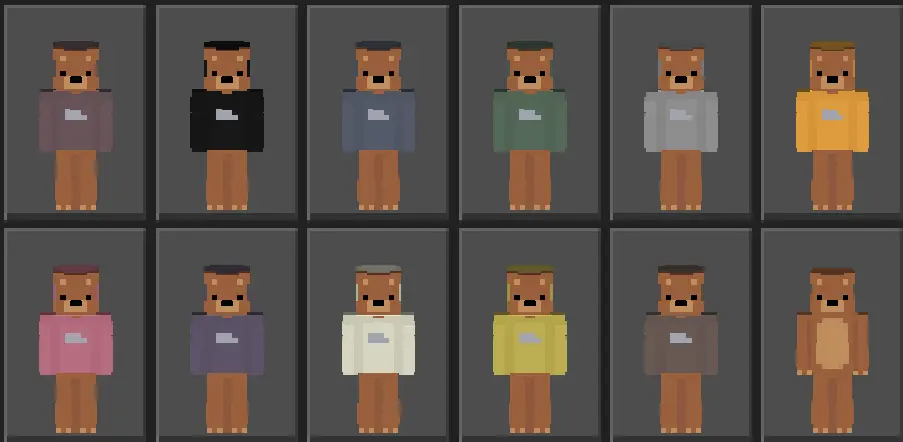 On Realms, creative plots, and mini-game servers, this pack makes it super easy to spin up little identities without any rules or plugins. You can decide that all staff members wear a certain animal, or say each team in a PvP map has to pick one animal and stick with different hoodie colors. In roleplay cities, an entire street can be run by “animal people,” with a panda running the bakery, a cat handling the café, and a bunny guarding the bank. Since the base animal skins are included alongside the hoodie versions, you can tone things down whenever you want without losing your character. If you like skins that are cute, readable from a distance, and perfect for clipping funny moments with friends, Animals In Hoodies Skin Pack gives you enough variety to keep swapping looks for a long time without anyone getting bored of the theme.