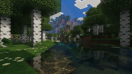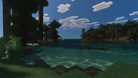 The lighting approach is soft and global, which is the best kind of upgrade for everyday survival play because it affects everything you do without being distracting. Your base interiors feel more natural, outdoor scenes feel less harsh, and shadows and highlights read smoother when you’re moving fast. Water is another headline feature. It’s described as raytraced-style water, which is basically the “this looks expensive” part of a Bedrock shader pack—water that feels deeper and more reflective instead of being a flat blue sheet. Paired with elegant fog transitions, your distance view gets that layered depth where cliffs, trees, and builds don’t just pop in like cutouts. The fog is meant to blend smoothly, so exploration feels more atmospheric instead of choppy.