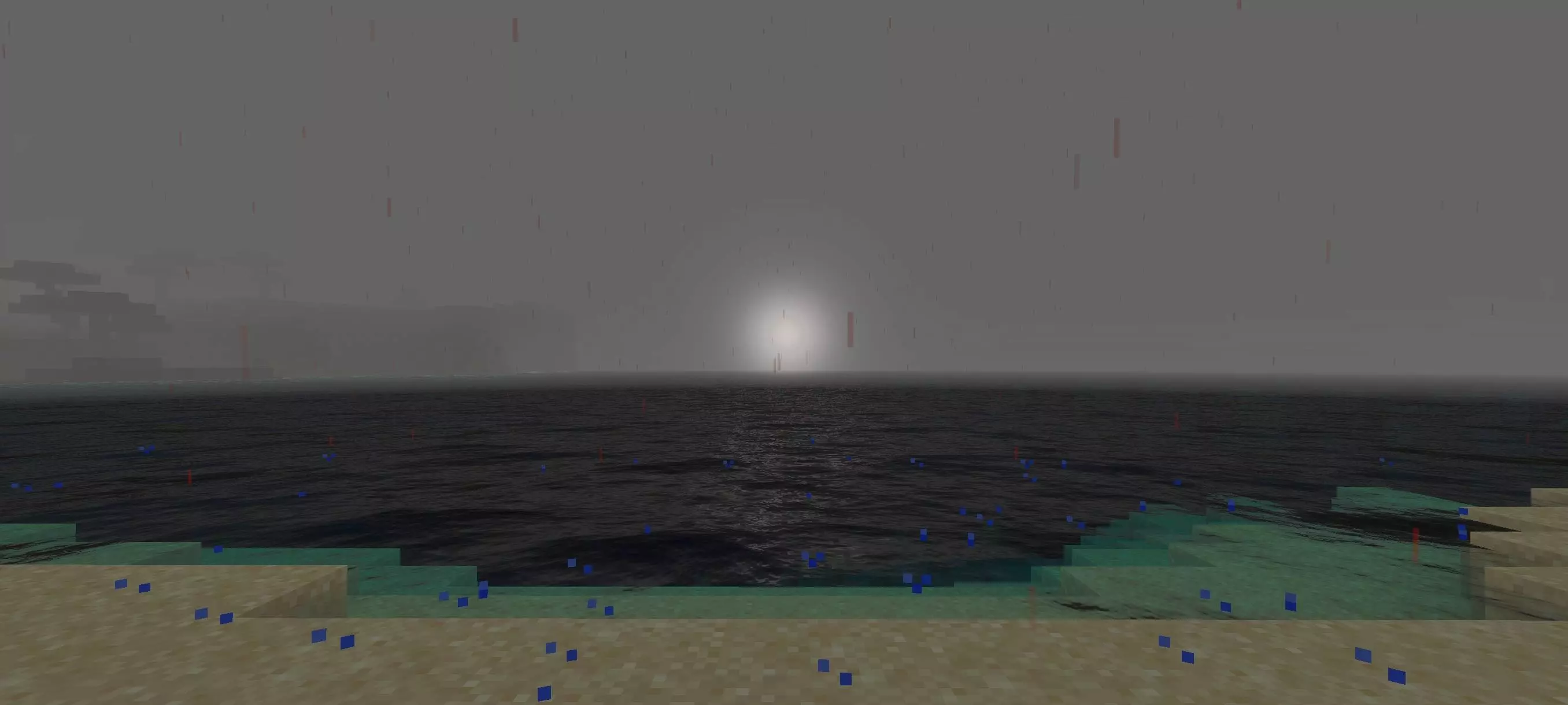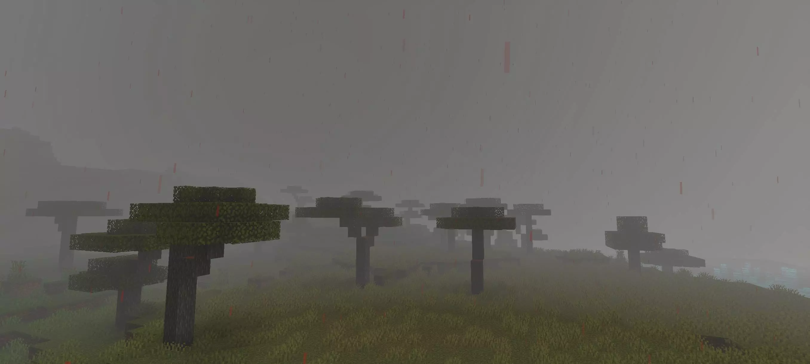 Then the shader adds the flashy horror moments that make it stand out. Blood rain and a blood moon are the kind of effects that instantly change the energy of a session. Blood rain makes exploration feel more threatening, and the blood moon pushes you to head out at night and hunt monsters just for the vibe of it. With CREEPYPASTA SHADER on, nighttime stops being only “farm mobs for drops” and starts feeling like a full horror event. Even if you’re doing normal survival tasks, the visuals can make it feel like you’re playing through a creepy map instead of your regular world.